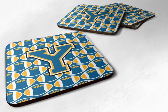 Carolines Treasures CJ1077-YFC Letter Y Football Blue & Gold Foam Coaster, 3.5 x 0.25 x 3.5 in. - Set of 4