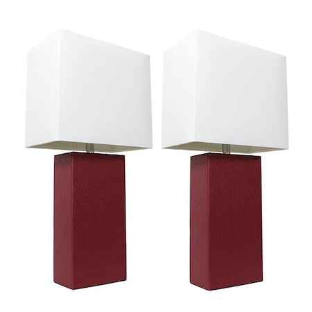 Elegant Designs LC2000-RED-2PK 2 Pack Modern Leather Table Lamps with White Fabric Shades, Red