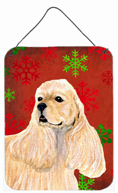 Carolines Treasures SS4729DS1216 12 x 16 in. Cocker Spaniel Red Snowflakes Holiday Christmas Aluminium Metal Wall Or Doo