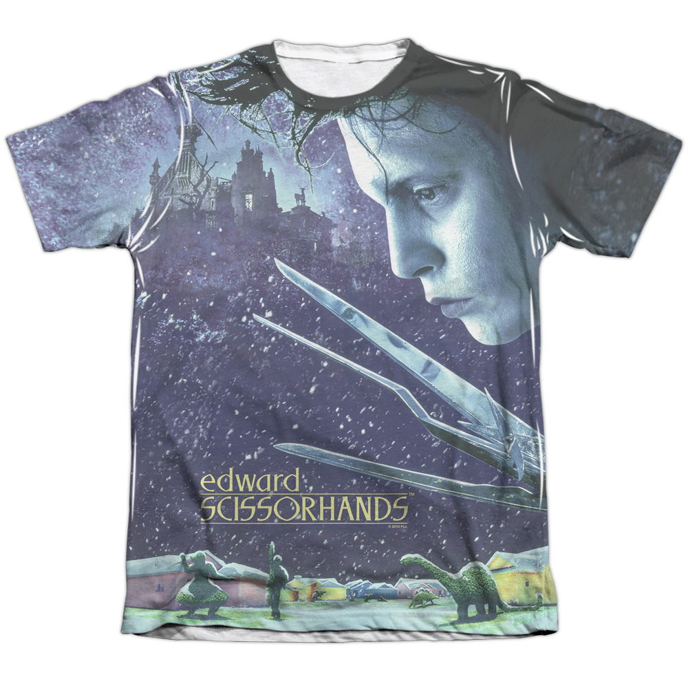 Trevco TCF145-ATPC-1 Edward Scissorhands & Home Poster Adult Regular Fit Short Sleeve T-Shirt, White - Small