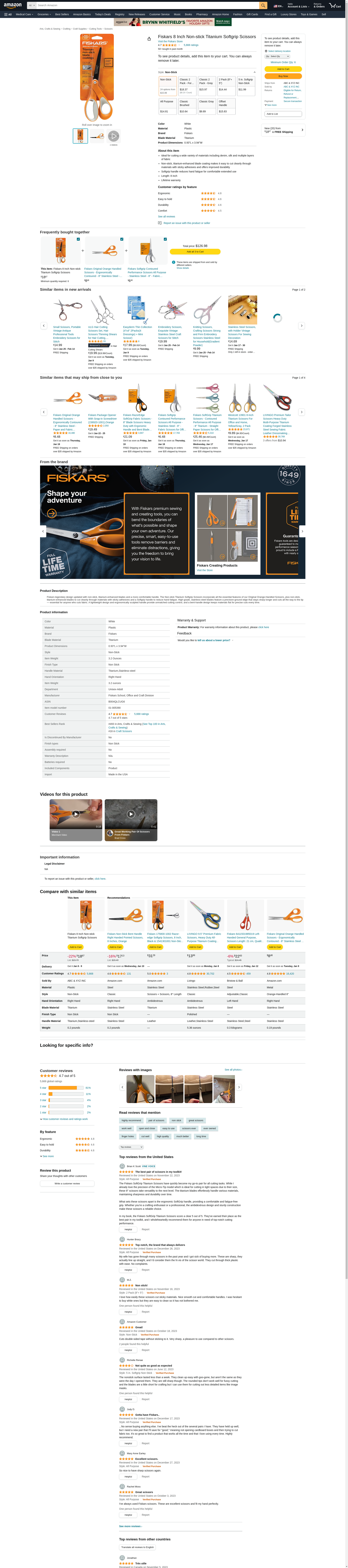 Fiskars 8 Inch Non-stick Titanium Softgrip Scissors