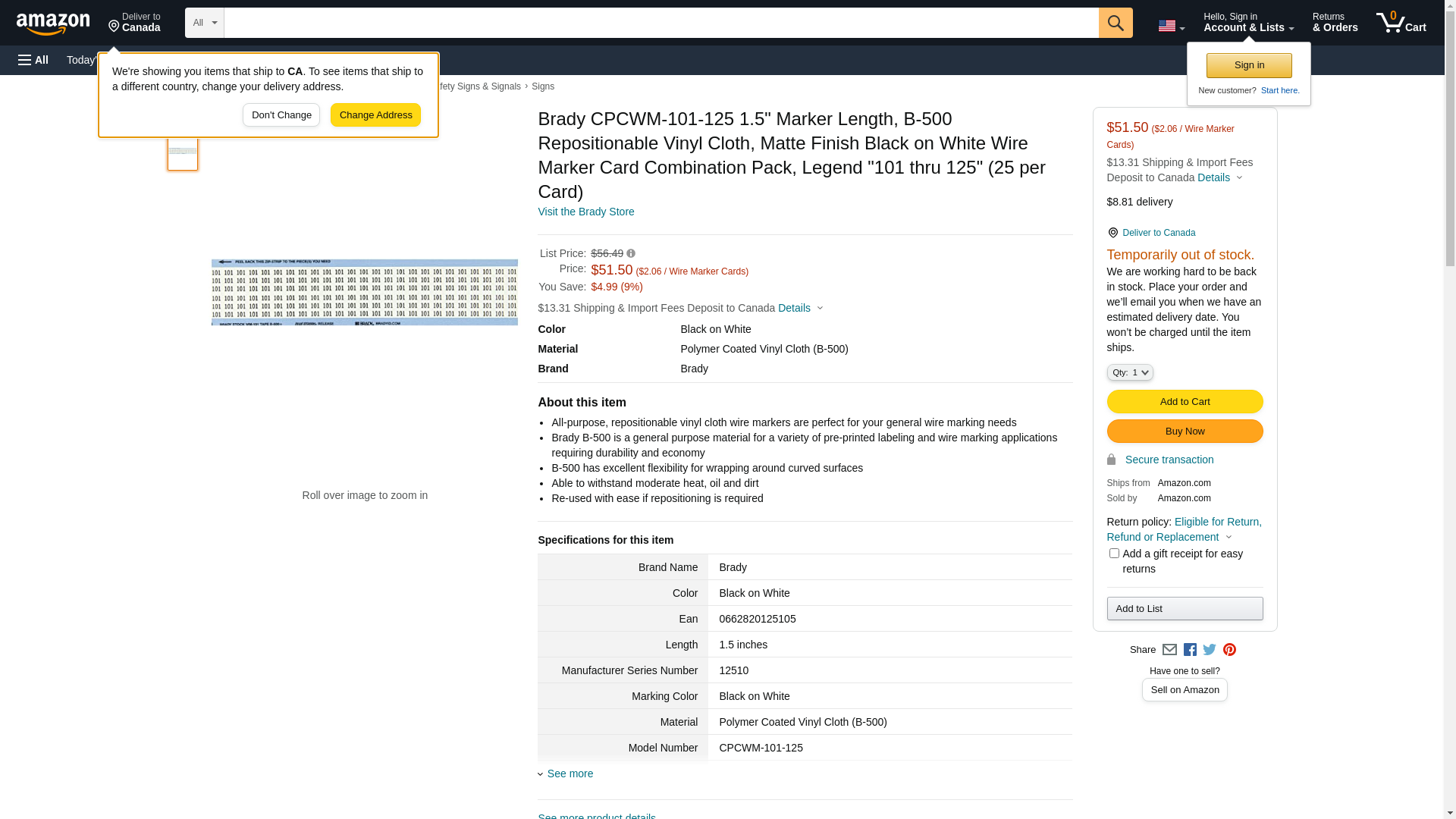 Brady CPCWM-101-125, 12510 1.5" Cloth Combination Pack Wire Marker w/Legend: 101 to 125, 3 Packs of 25 pcs