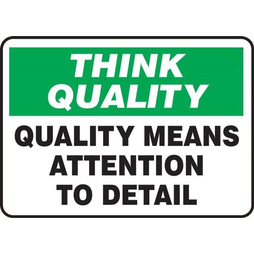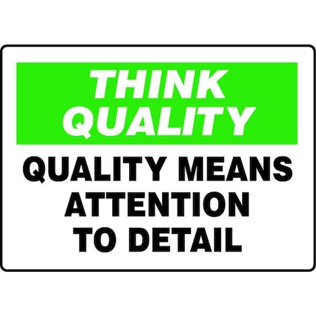 Accuform MQTL771VP Plastic Sign, Think Quality Quality Means Attention to Detail", 10" Length x 14" Width x 0.055" Thickness, Green/Black on White