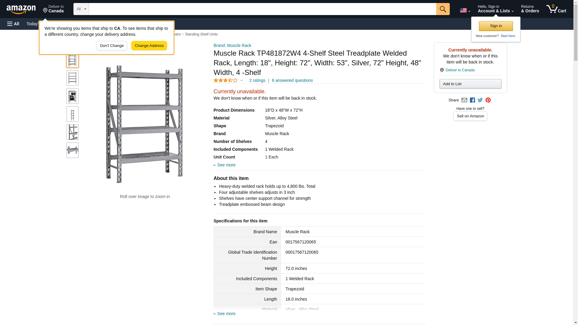 Muscle Rack TP481872W4 4-Shelf Steel Treadplate Welded Rack, Length: 18", Height: 72", Width: 53", Silver, 72" Height, 48" Width, 4 -Shelf