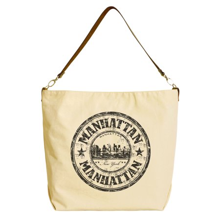 Manhattan, New York Beige Printed Canvas Tote Bag with Leather Strap WAS_29