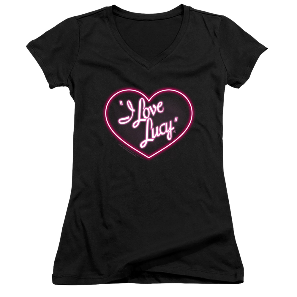 Trevco LB353-JV-2 I Love Lucy & Neon Logo-Junior V-Neck T-Shirt, Black - Medium