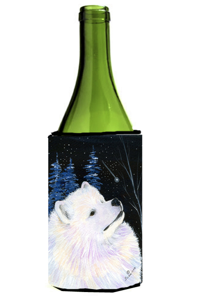 Caroline's Treasures SS8376LITERK Starry Night Samoyed Wine Bottle Hugger Bottle Cooler Sleeve Hugger Machine Washable Collapsible Insulator Beverage Insulated Holder