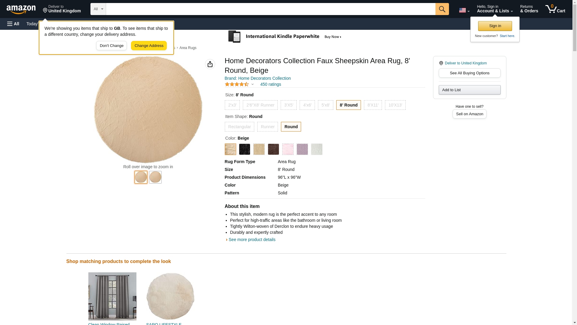 Home Decorators Collection Faux Sheepskin Area Rug, 8' Round, Beige