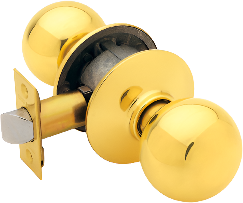 Schlage F10-ORB-605 Bright Brass Passage Orbit Style Knob Certifications: ANSI A156.2, 1966, Series 4000, Grade 2 Applications: Residential locks single and multi-family entrance doors Door Ranges: 1-3/8" to 1-3/4" Backset: Universal latch standard, fits 2-3/8" or 2-3/4" backsets. Latches: 1" x 2-1/4", Radius corner faceplate, 7/8" housing, 1/2" throw Strikes: 1-5/8" x 2-1/4", Full lip, Radius corner, no box Cylinder: 5-pin, C keyway