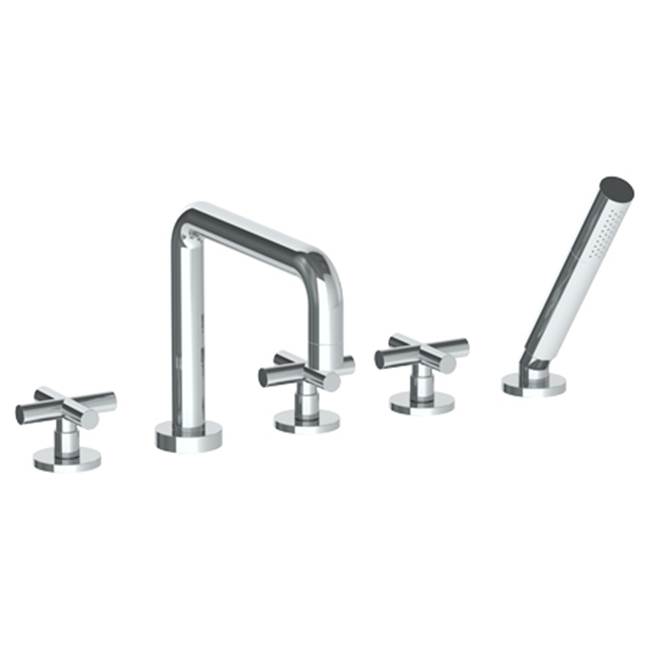 WATERMARK 23-8.26.1-L9-EB LOFT 7 1/2 INCH THREE HANDLES DECK MOUNT TUB FILLER WITH HAND SHOWER, EBONY, PRINCE HANDLE