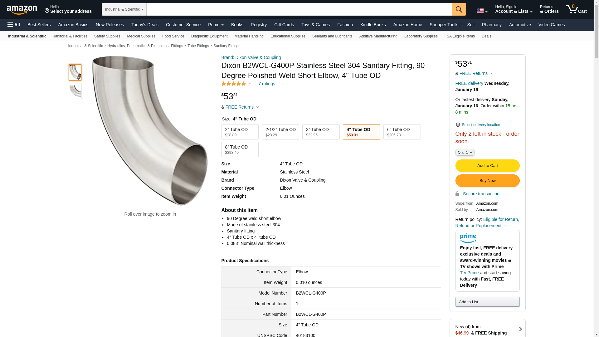 Dixon B2WCL-G400P Stainless Steel 304 Sanitary Fitting, 90 Degree Polished Weld Short Elbow, 4" Tube OD