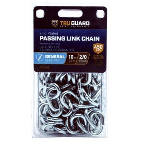 Tru-Guard, 2/0 x 10', Zinc Plated, Passing Link Chain, Plastic Clamshell, WLL 450 LB.