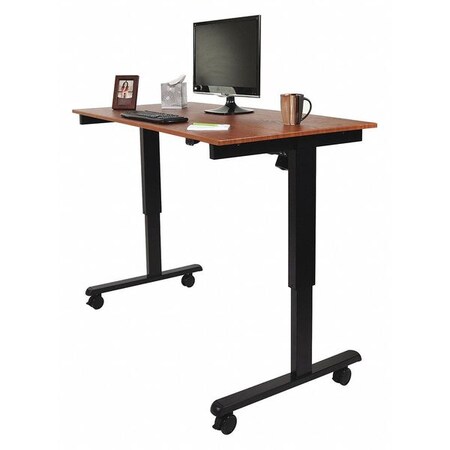 Stand Up Desk, Electric, 60", Black Frame, Teak