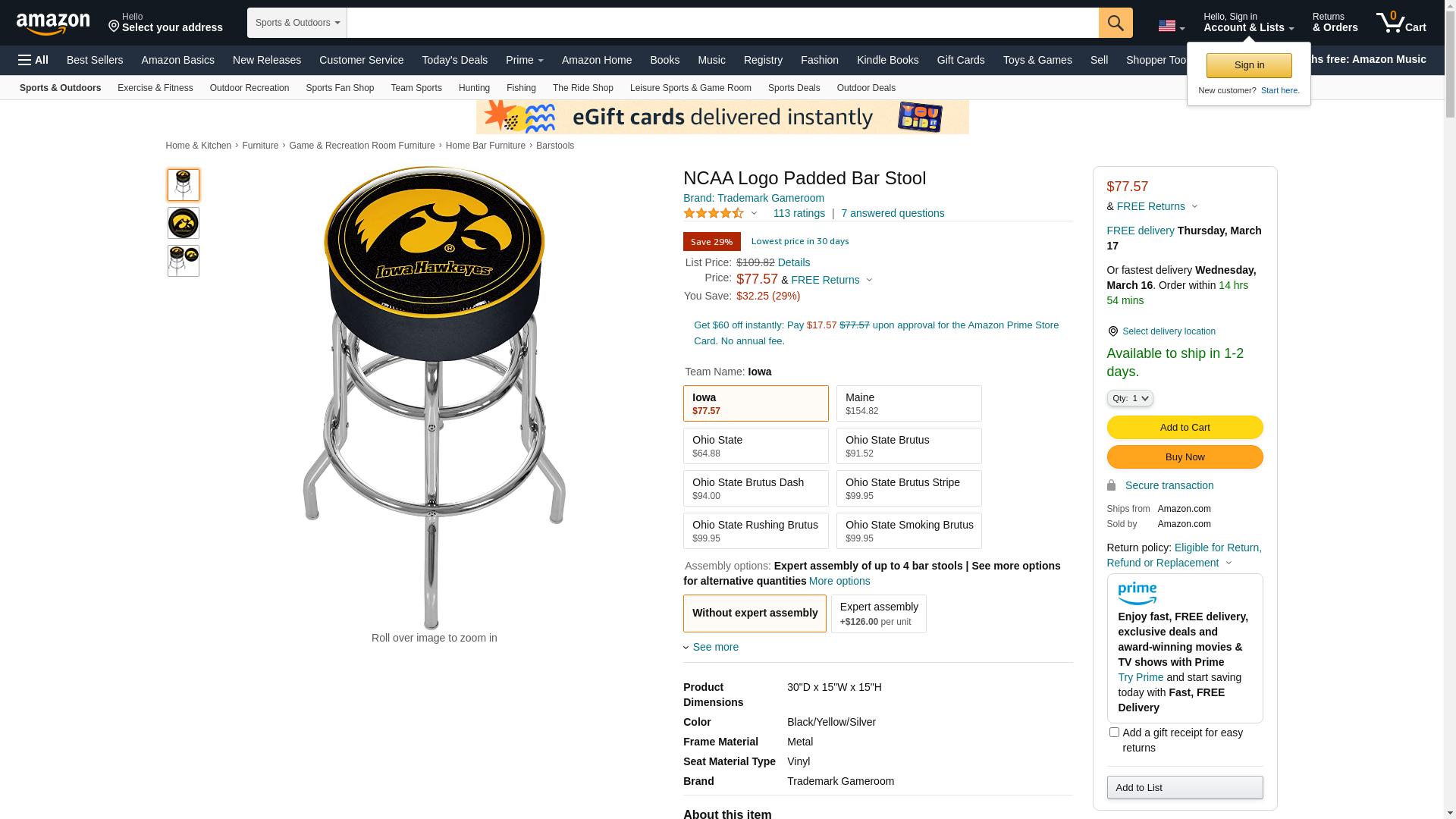 This officially licensed chrome bar stool will provide you and your guests with a comfortable seat as well as a stylish accent to your game room, garage or collection. The stool's seat features an authentic logo highlighted by durable marine grade vinyl sides trimmed with quarter inch vinyl beading. The seat also includes luxurious foam padding and a 360 degree swivel. Chrome double rung reinforced legs are made of tubular steel that is both lightweight and supportive. Bring style, function and comfort to your game room, garage or collection with an officially licensed chrome bar stool.