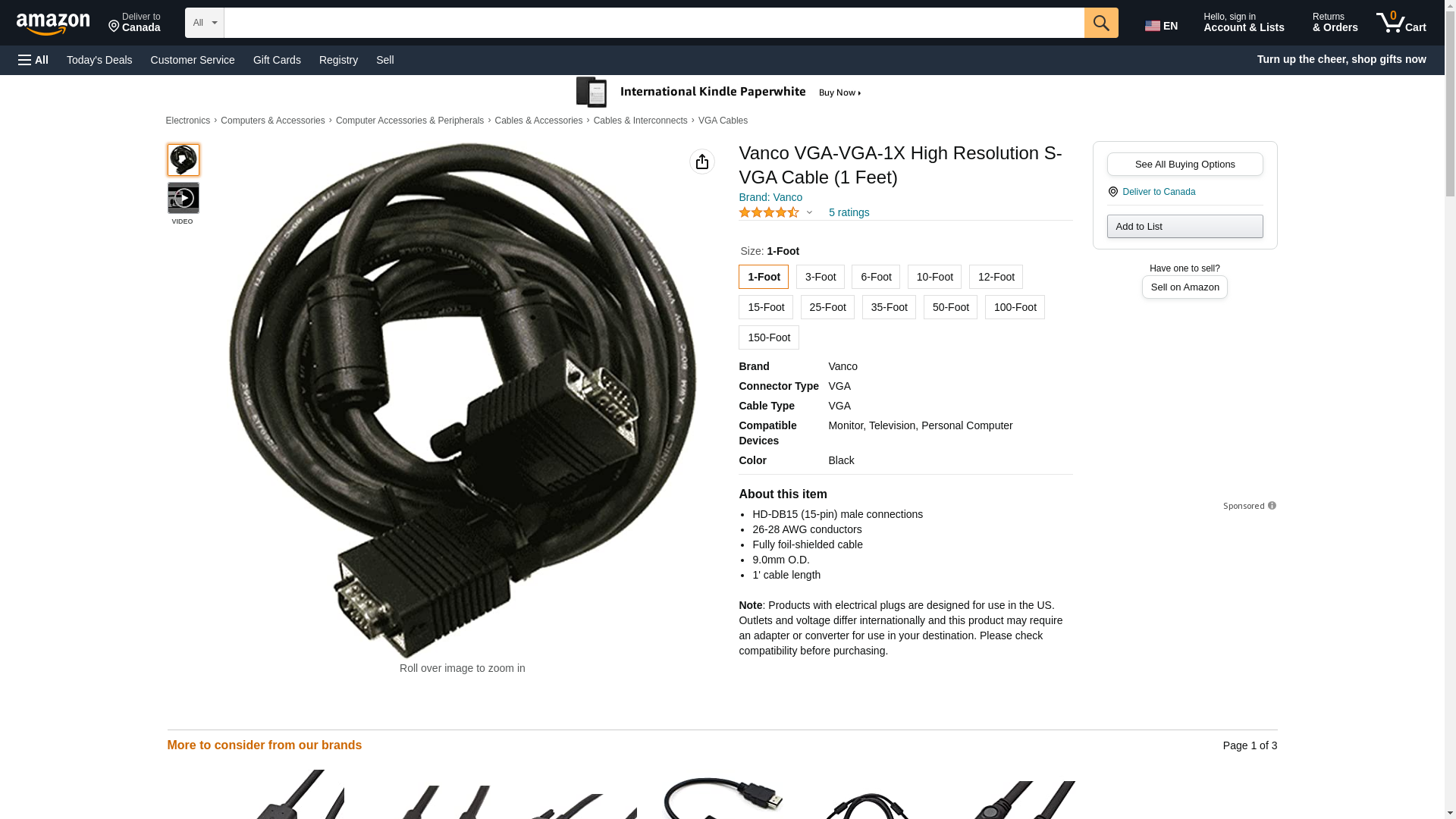 Vanco VGA-VGA-75X High Resolution S-VGA Cable (75 Feet). HD-DB15 (15-pin) male connections. 26-28 AWG conductors. Ful...