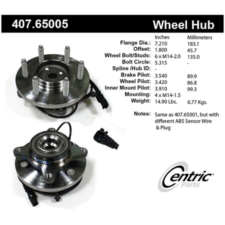 Centric Premium Hub and Bearing Assembly; With Integral ABS 407.65005 | 407.65005