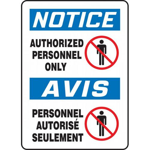 Accuform Bilingual Sign "Notice, Authorized Person Only" FBMADM866XT. ✅Accuform authorized distributor ✅. ☎ (800) 884-5767 Mon-Fri 8:00 AM - 5:00 PM ET or order online 24/7