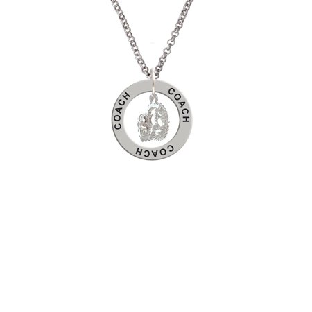 Silver Tone 3-D Tiara Coach Affirmation Ring Necklace. Silver Tone, hand enameled charms. Charm size is approx. 0.54 x 0.43 x 0.28 inches (HxWxD) including loop. Silver tone 2mm Belcher Chain Necklace is approx. 23 Inches with a Lobster Claw Clasp. Affirmation Ring is approx. 0.86 x 0.86 x 0.05 (HxWxD). This inspirational piece of jewelry is very meaningful. Its circular shape is symbolic for endless belief in the message that is imprinted around the ring. These are motivational or sentimental messages to the wearer. Makes a great Graduation gift! PLEASE NOTE: Our products are lead safe, but are not intended for children 14 years and younger.