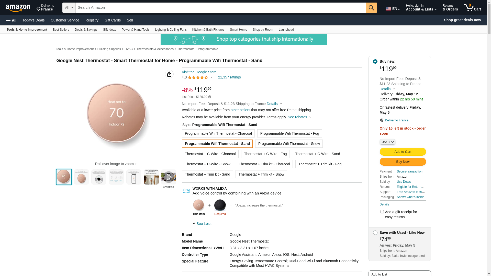 Google Nest Thermostat - Smart Thermostat for Home - Programmable Wifi Thermostat - Sand