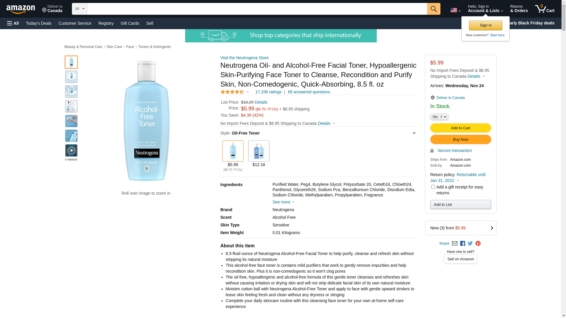 - 8.5-fluid ounce of Neutrogena Alcohol-Free Facial Toner to help purify, cleanse and refresh skin without stripping its natural moisture