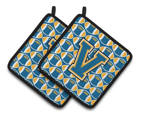 Carolines Treasures CJ1077-VPTHD Letter V Football Blue & Gold Pair of Pot Holders, 7.5 x 3 x 7.5 in.