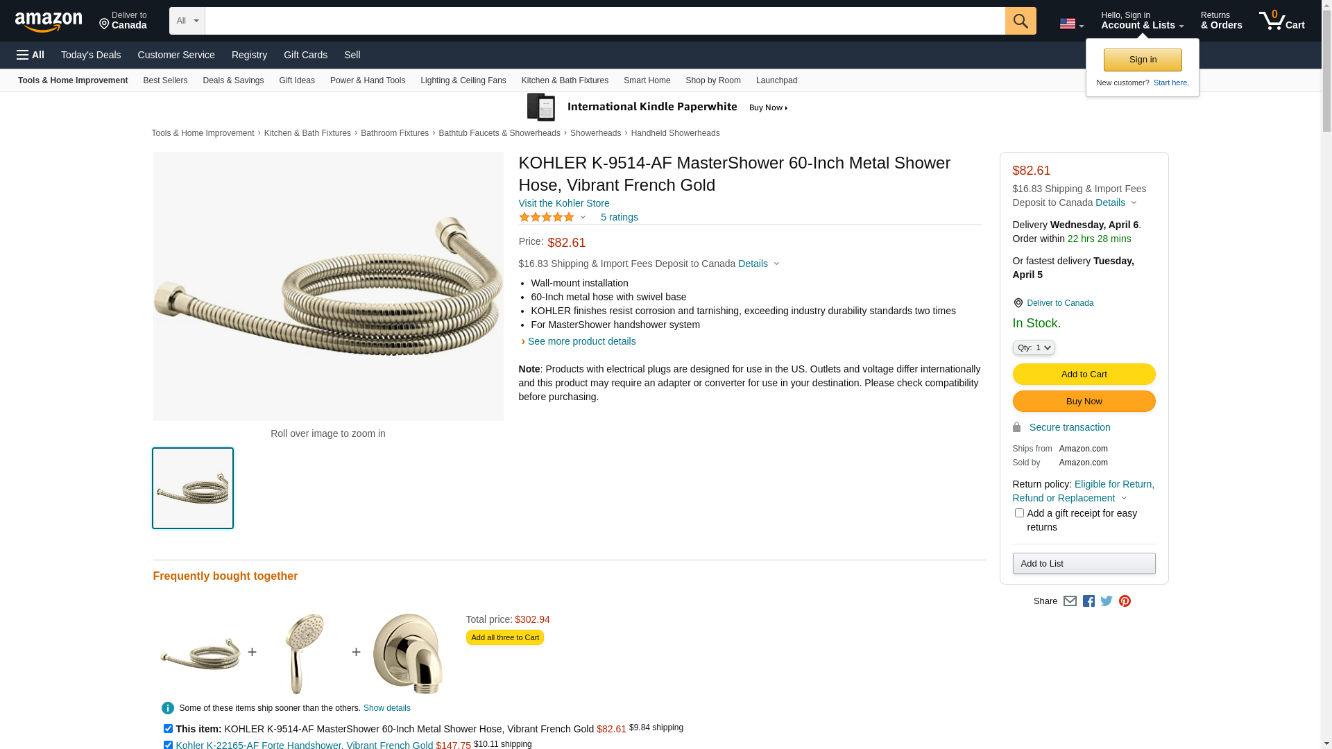![]() Faucet Depot | K-9514-AF | 1 | 1 | 1 @ $90.60 | |
