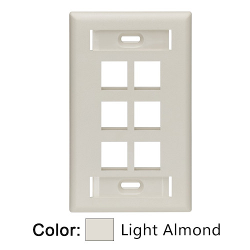 Leviton 42080-6TS - Single-Gang QuickPort Wallplate with ID Windows - 6-Port - Light Almond