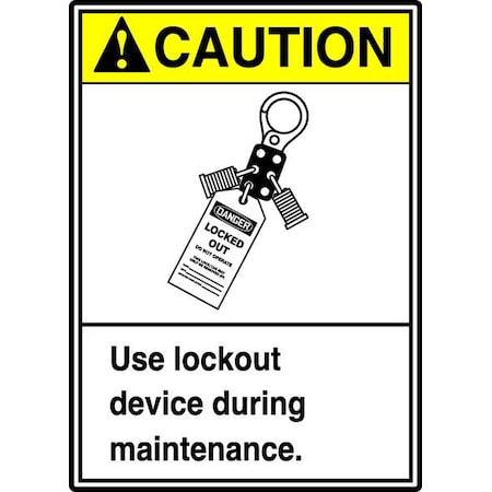 Accuform MRKT601VA Aluminum Sign, Legend "Caution USE Lockout Device During Maintenance", 10" Length x 7" Width, Yellow/Black on White
