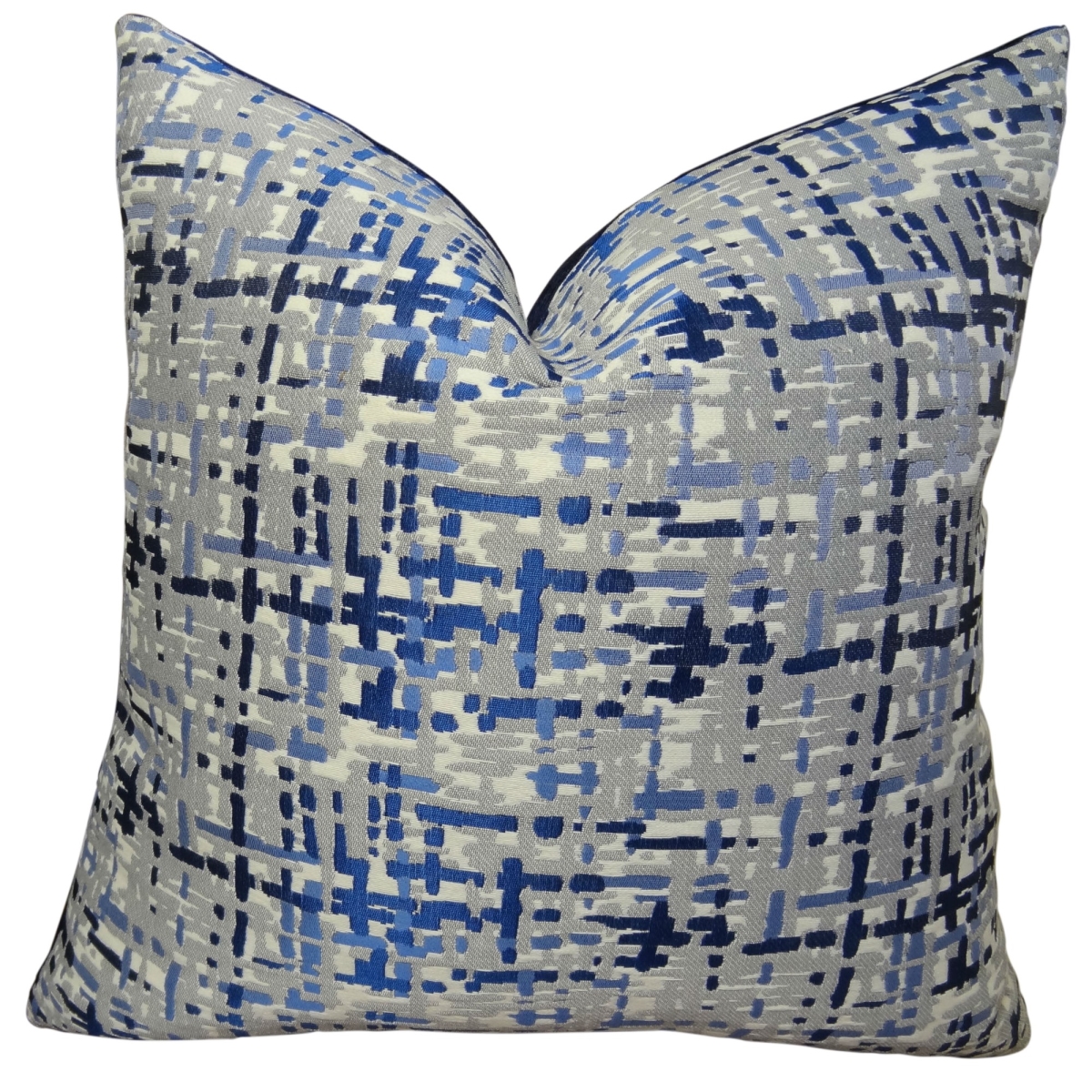 Plutus PB11234-2424-SP Abstract Plaid Handmade Throw Pillow, Navy, Blue & Gray - 24 x 24 in.