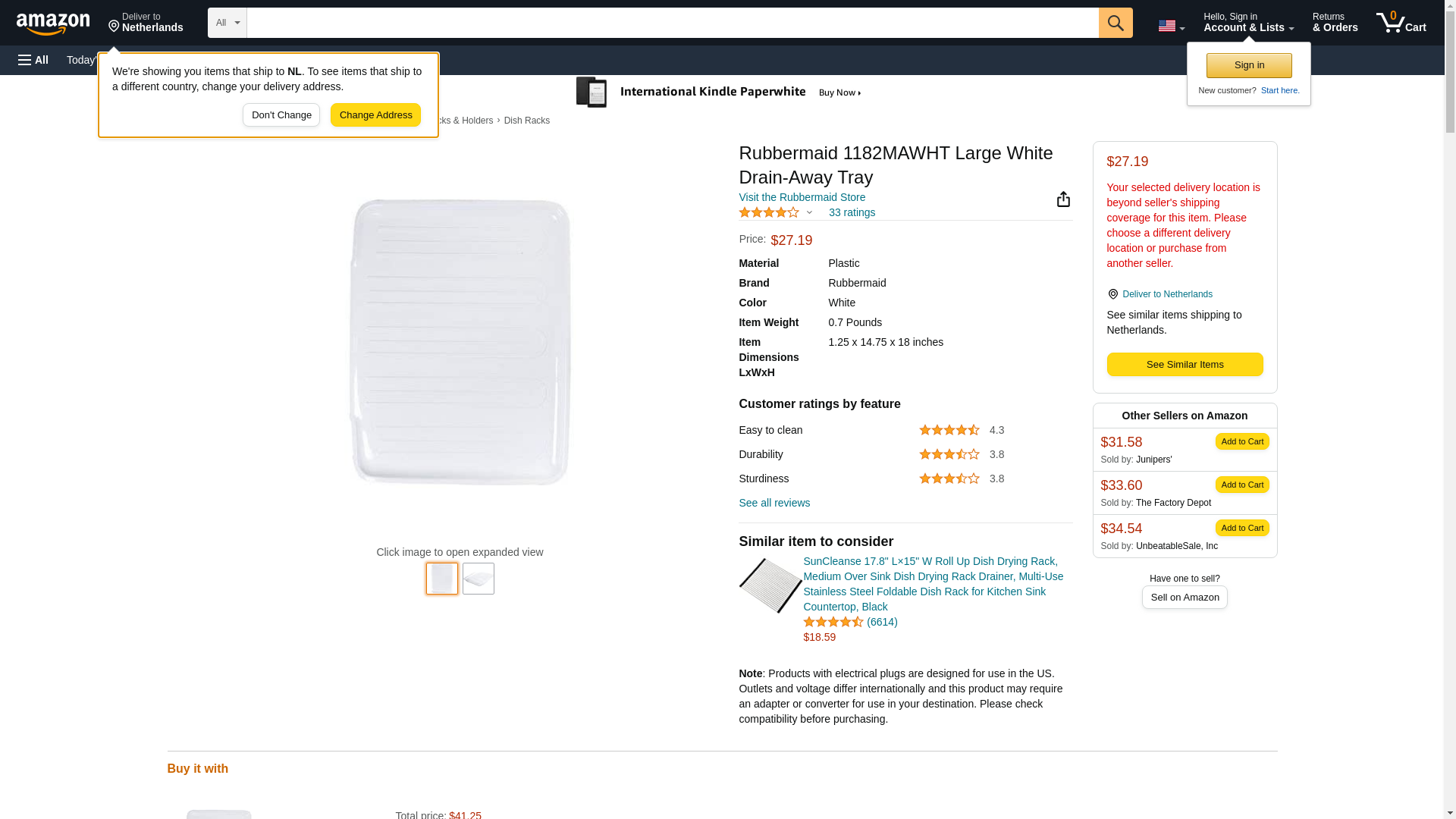 Rubbermaid 1182MAWHT Large White Drain Tray (Pack of 1)
