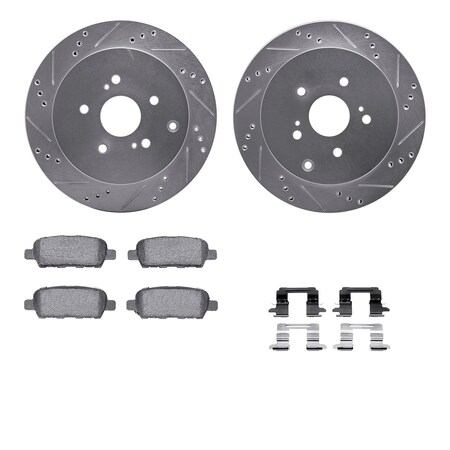 Rear - Dynamic Friction Company Brake Rotors - Drill/Slot - Silver with Ceramic Brake Pads and Hardware Kit 7312-01012