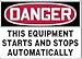 DANGER THIS EQUIPMENT STARTS AND STOPS AUTOMATICALLY