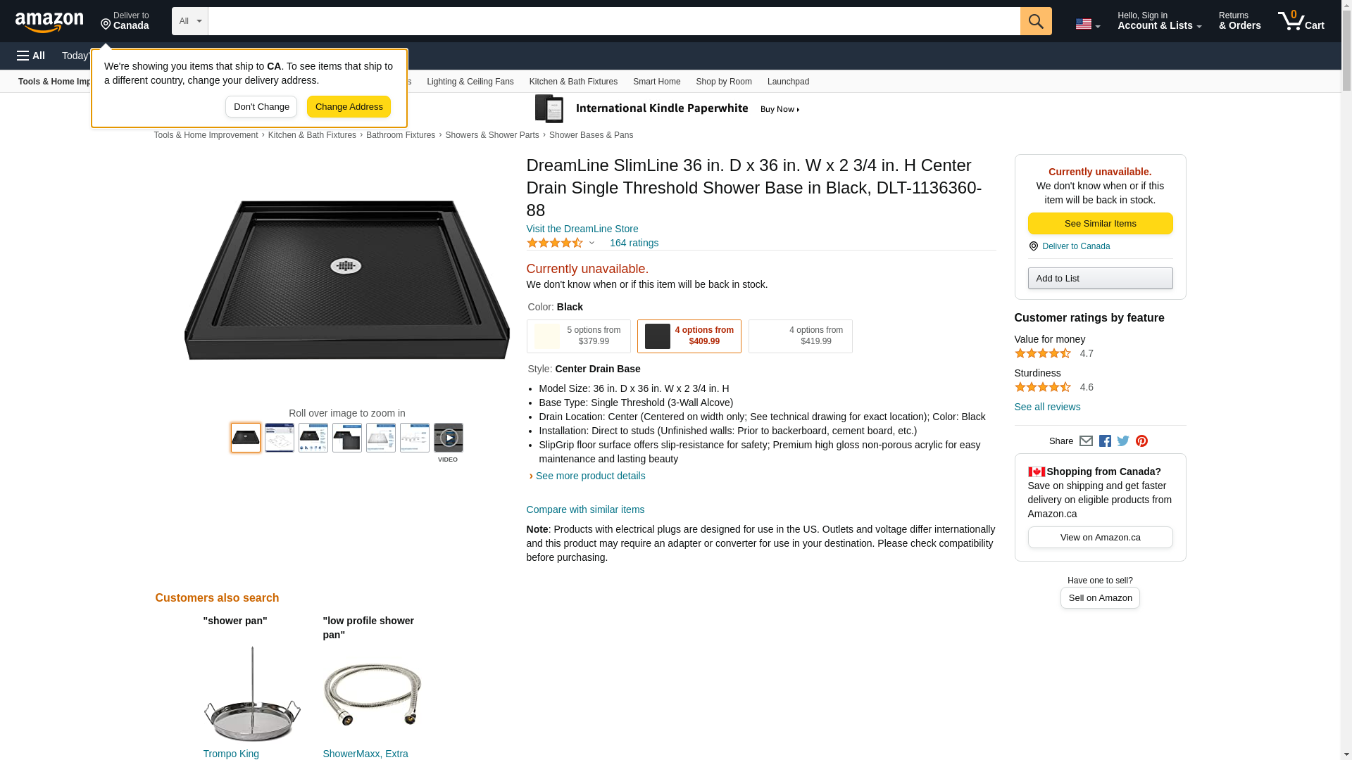 DREAMLINE DLT-1136360-88 SLIMLINE 36 D X 36 W X 2 3/4 H SINGLE THRESHOLD SHOWER BASE, BLACK