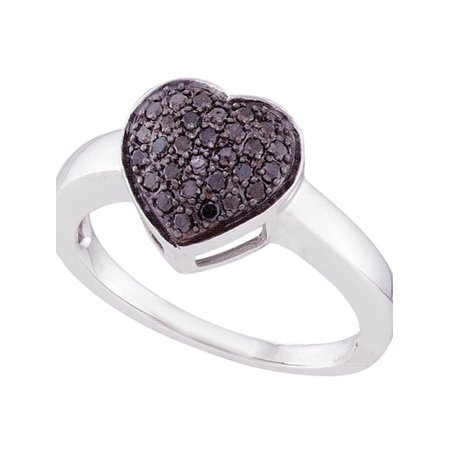 10kt White Gold Womens Round Black Color Enhanced Diamond Heart Cluster Ring 1/4 Cttw. †Combined diamond weight of 1/4 carats total weight represents a range of 0.23 - 0.29 cts. t.w.