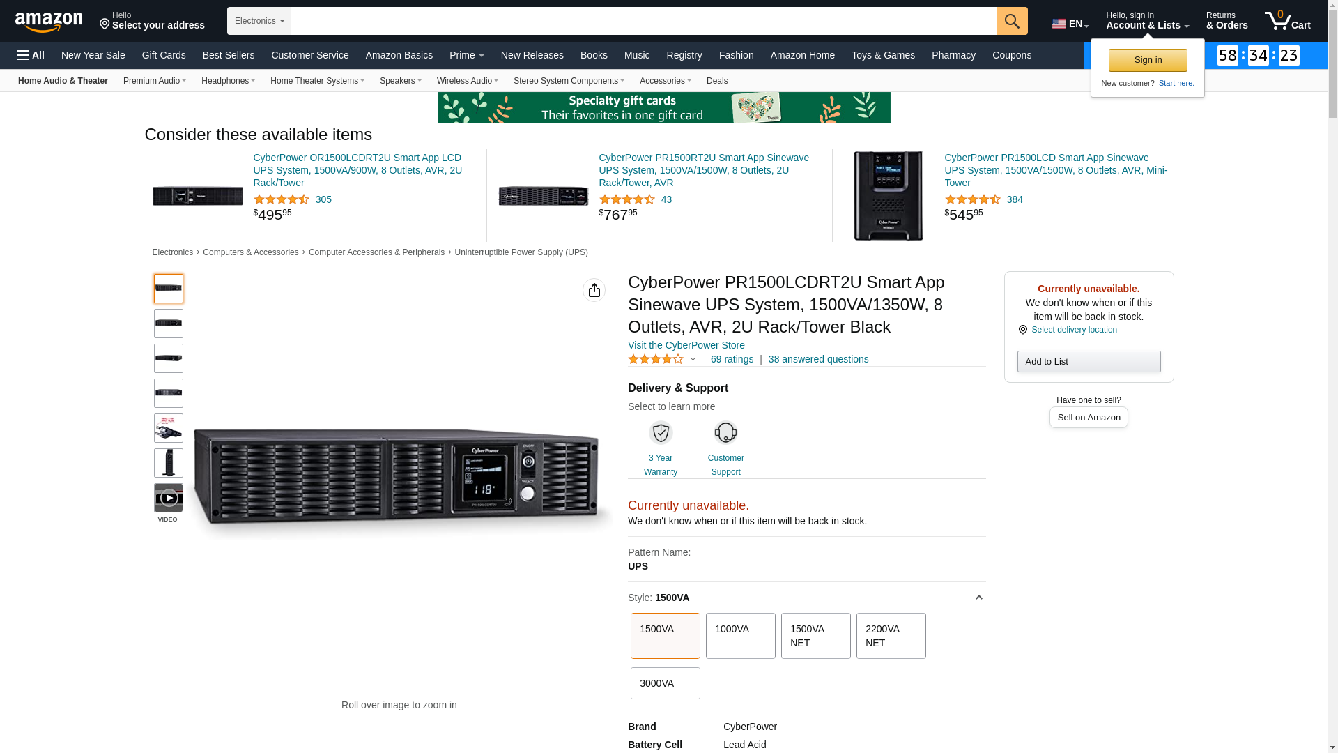 ![]() Syre | PR1500LCDRT2U | 1 | -2 | 1 | 1 @ $785.99 |