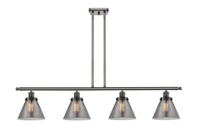 INNOVATIONS LIGHTING 916-4I-OB-G43 BALLSTON LARGE CONE 4 LIGHT 48 INCH PLATED SMOKE GLASS ISLAND LIGHT, OIL RUBBED...