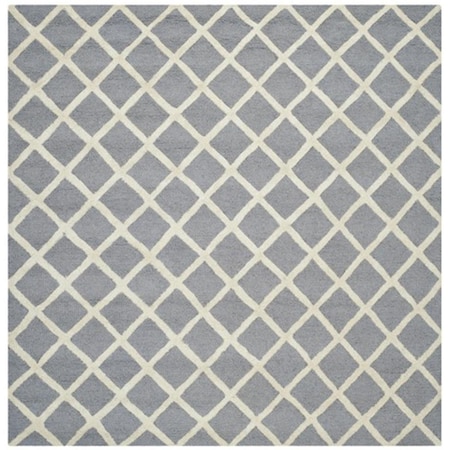 SAFAVIEH Cambridge Collection Area Rug - 8' Square, Silver & Ivory, Handmade Moroccan Trellis Wool, Ideal for High Traffic Areas in Living Room, Bedroom (CAM135D)