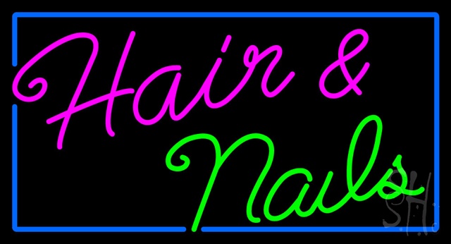 Sign Store N100-3633 Cursive Hair And Nails With Blue Border Neon Sign, 37 x 20 x 3 In.