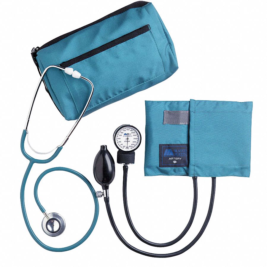 MABIS MatchMates Aneroid Sphygmomanometer and Dual Head Stethoscope Combination Home Blood Pressure Kit with Calibrated Nylon Cuff, Professional Quality, Carrying Case, Teal