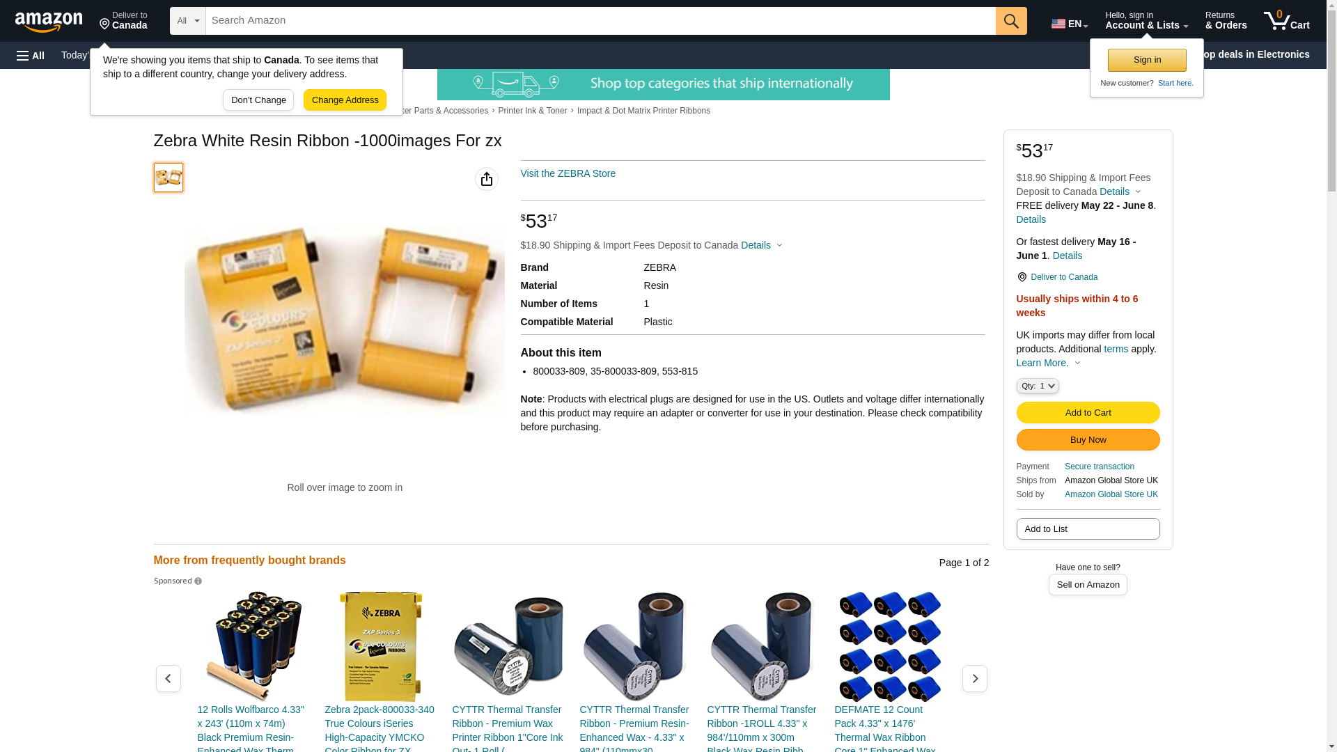 Zebra 800033-809 Printer Ribbon