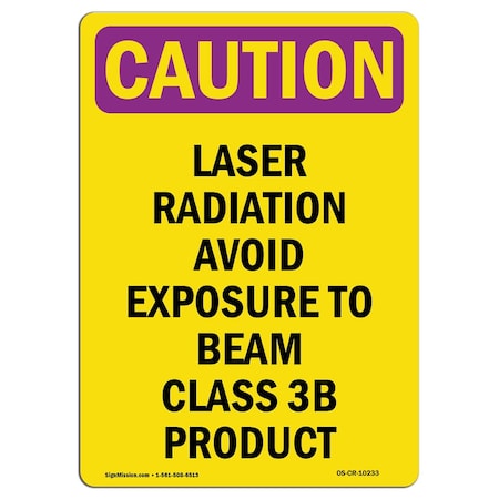 OSHA CAUTION RADIATION Sign, Laser Radiation Avoid Exposure, 18in X 12in Rigid Plastic