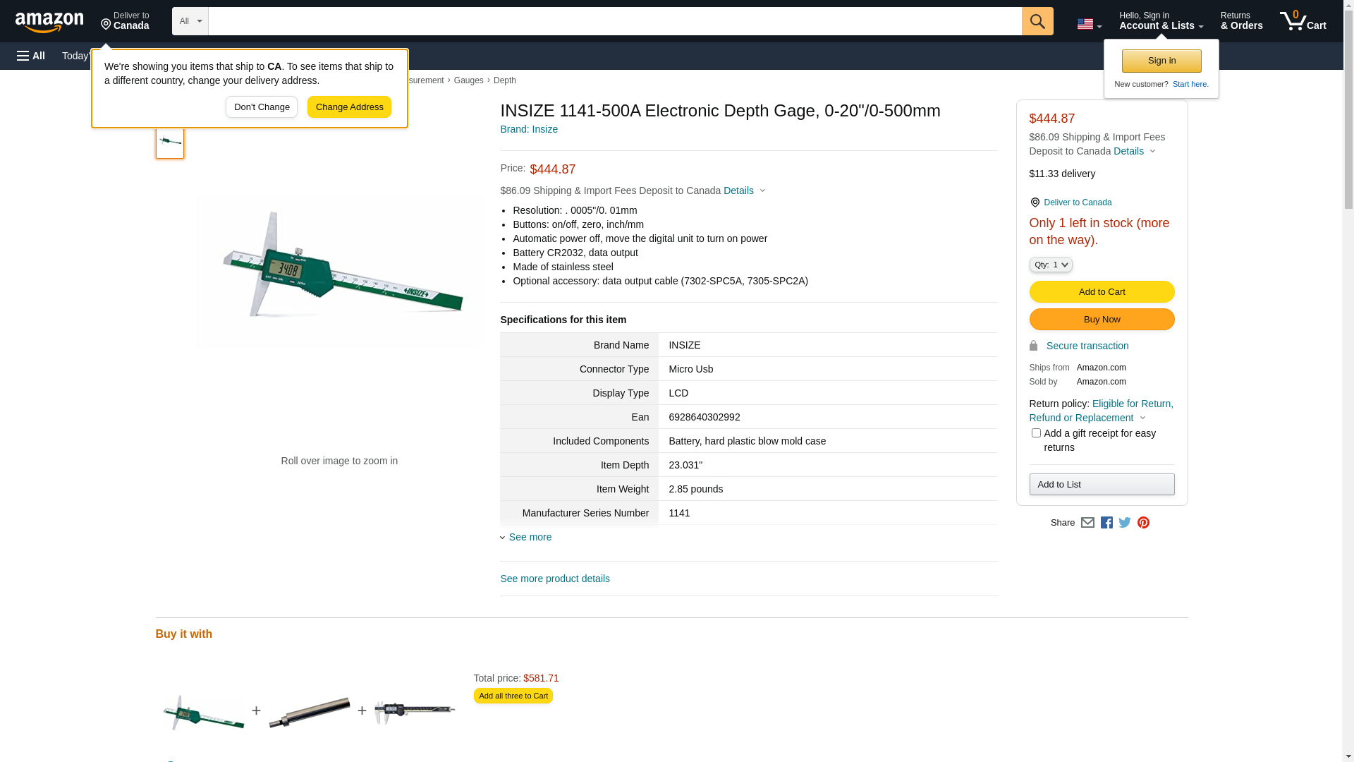 Buy Insize 1141-500A, Electronic Depth Gage, 0-20"/0-500mm Range, and related products.