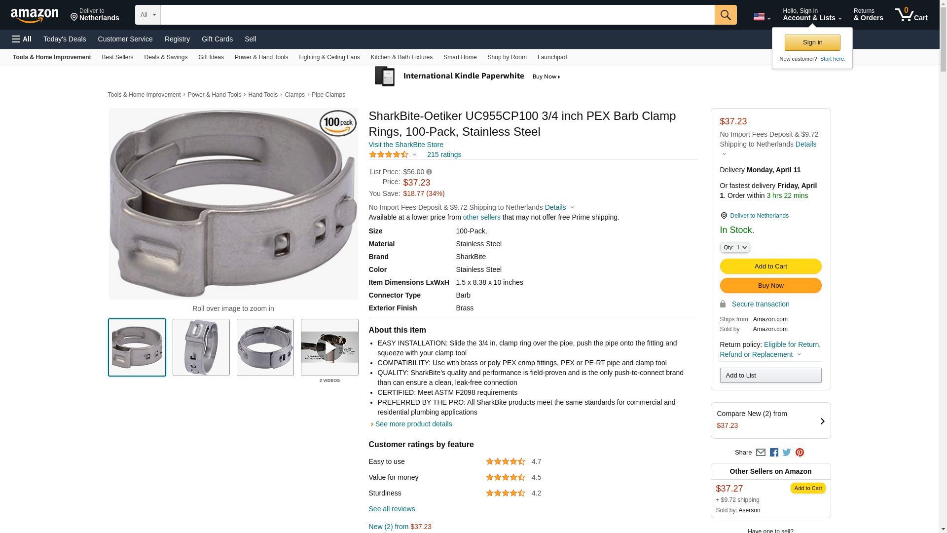 SharkBite 3/4 Inch Clamp Ring, Pack of 100, Stainless Steel Plumbing Fitting, PEX Pipe, PE-RT, UC955CP100