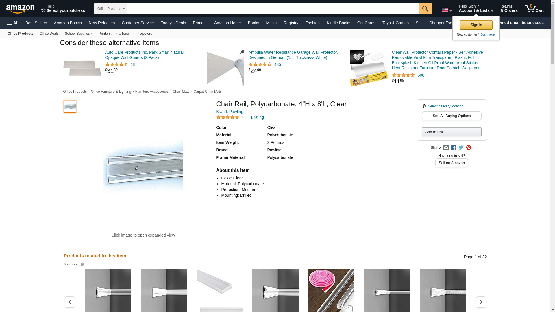 Clear polycarbonate rub rails won't distract from the decor yet offer complete impact protection. **This product is prohibited from shipping to California.**, Lot of 1
