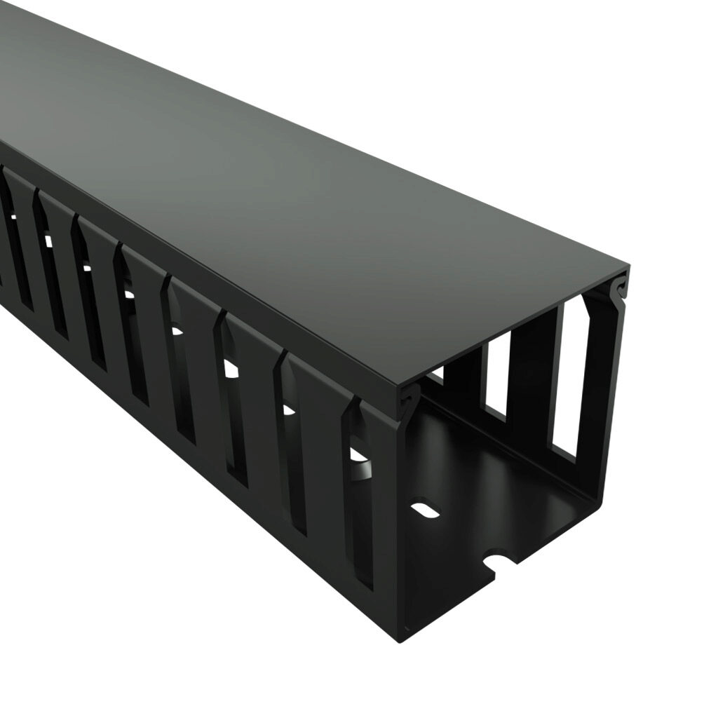 T1-2222K-1 - Iboco T1 series open slot wide finger wire duct, 2.25in width, 2.25in height, 6.5ft/2m length, black. Cover included.