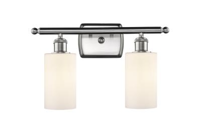 516-2W-SN-G801 Art Nouveau, Transitional, Modern Style Ballston Collection 2 Light Indoor Bath Vanity Light In Brushed Satin Nickel Finish With Cylinder Shaped Matte White Glass Shade. Rated For: Damp Location. Light Bulb Data: 2 Incandescent, Medium Base 60 Watt. Bulb Included: No. Dimmable: Yes.