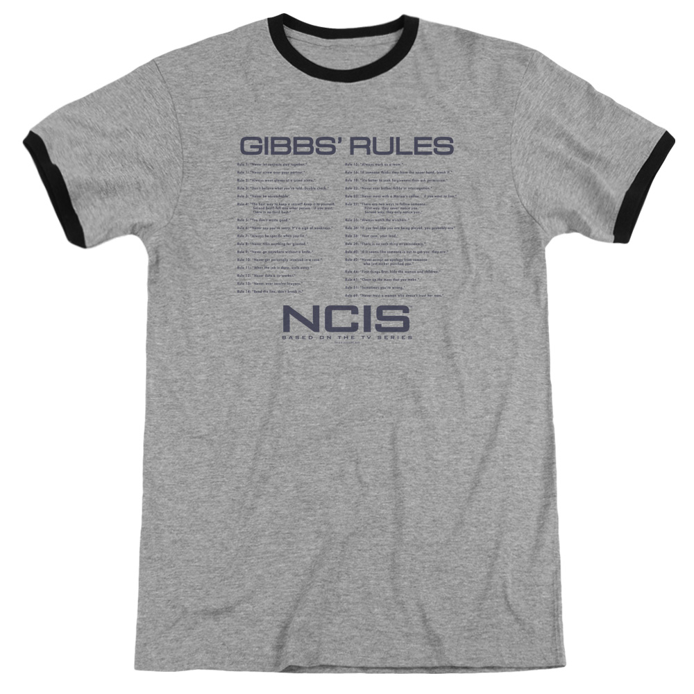 Trevco CBS1608-AR-4 NCIS & Gibbs Rules Adult Ringer Short Sleeve T-Shirt, Heather & Black - Extra Large