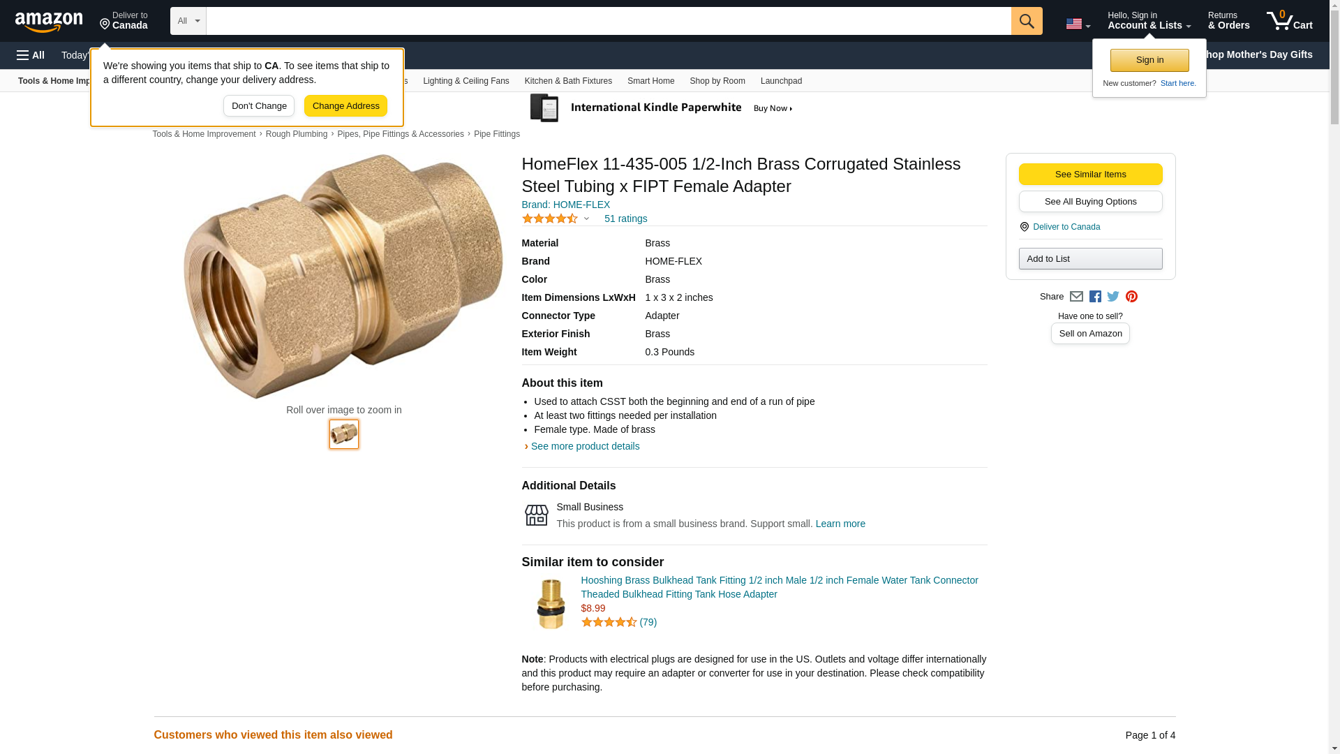 HomeFlex 11-435-005 1/2-Inch Brass Corrugated Stainless Steel Tubing x FIPT Female Adapter