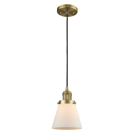 Innovations Lighting 201C-BB-G61-LED Small Cone-3.5W 1 LED Mini Pendant in Industrial Style-6 Inches Wide by 8 Inches High, Brushed Brass Finish with Matte White Glass