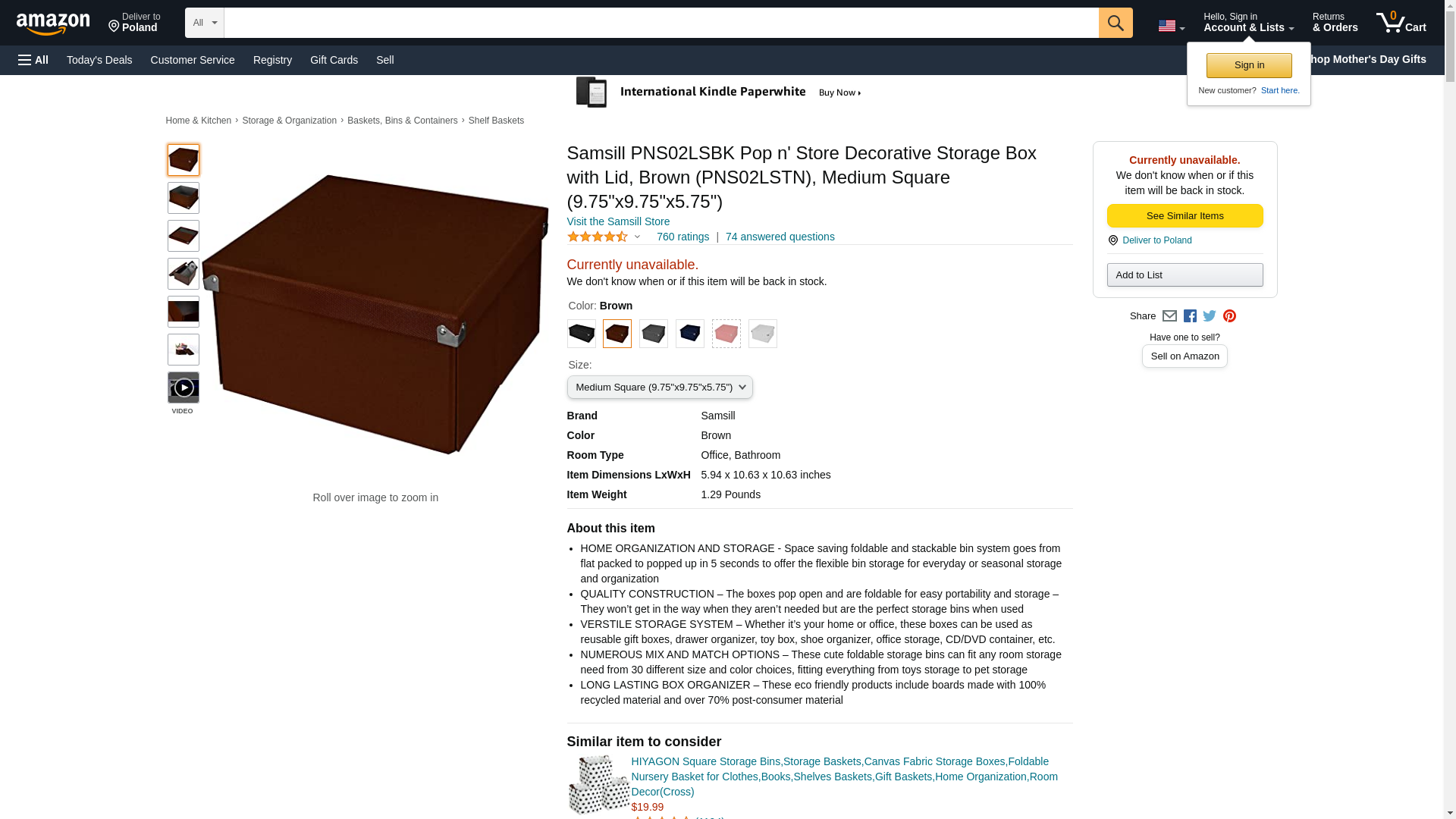Samsill PNS02LSBK Pop n' Store Decorative Storage Box With Lid, Brown (PNS02LSTN), Medium Square (9.75"x9.75"x5.75")